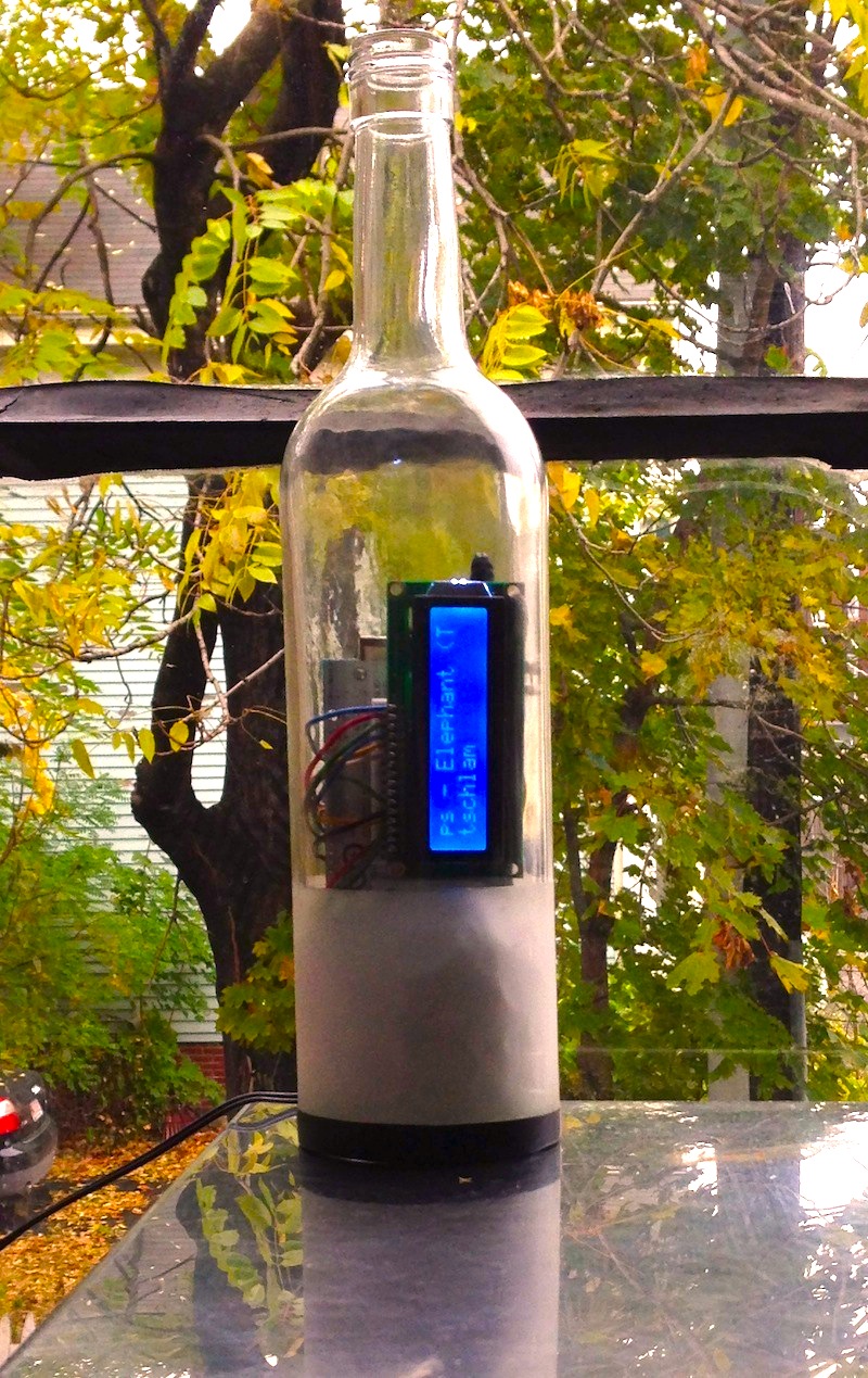 With the development of low-cost / low-power / Internet-enabled sensors that can live inside physical objects, there’s an interesting opportunity to rethink what a “button” might look like. As a recent hack, I wired up a wine bottle to act as a “thematic button” for our office’s communal music player. Here’s how it works…